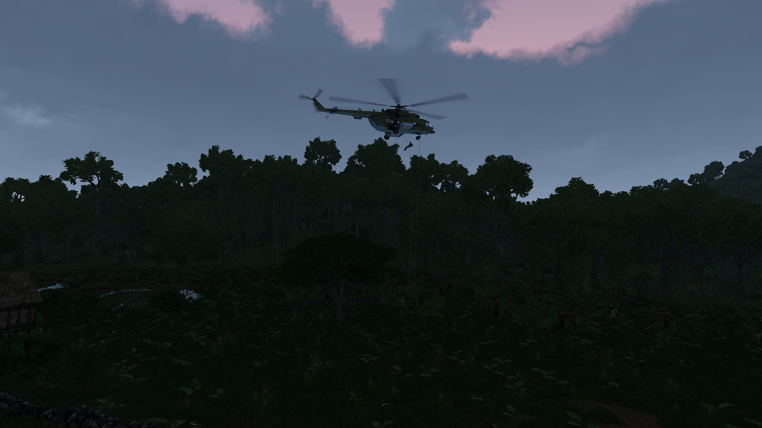 The exfil south to the village of Quy Loc is intersperced with paratroopers being dropped in Endgame Red's path, and exploratory fire from the villages of Cao Dec and Ben Cai. Cambridge forces used artillery fire anytime they got an eye on the squad's position, but the marines kept moving and ignored efforts to trick them into revealing their positions. Pushing through to Quy Loc a final hostile blocking force was destroyed, before the marines loaded up into the boats that had been stashed there for them, and exfilled east along the river, pursued by helicopter gunships.