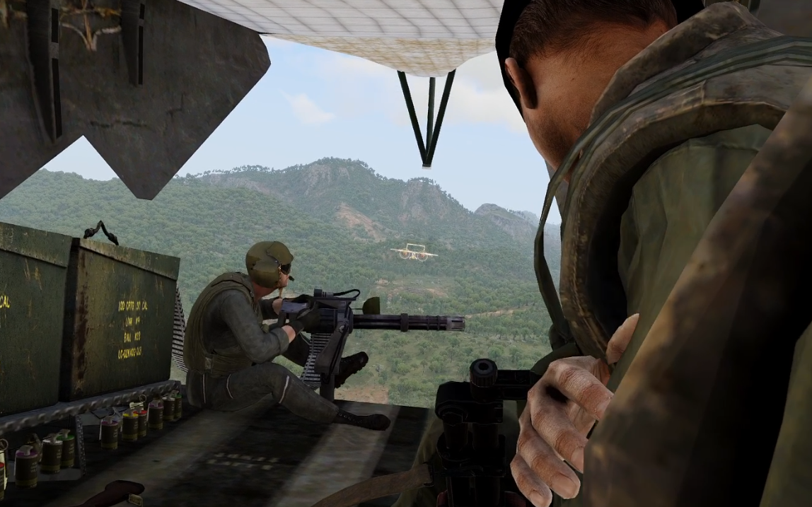 To be highly commended for running to the downed helicopter, crewing the door gun, and mowing down the bad guys from the door.