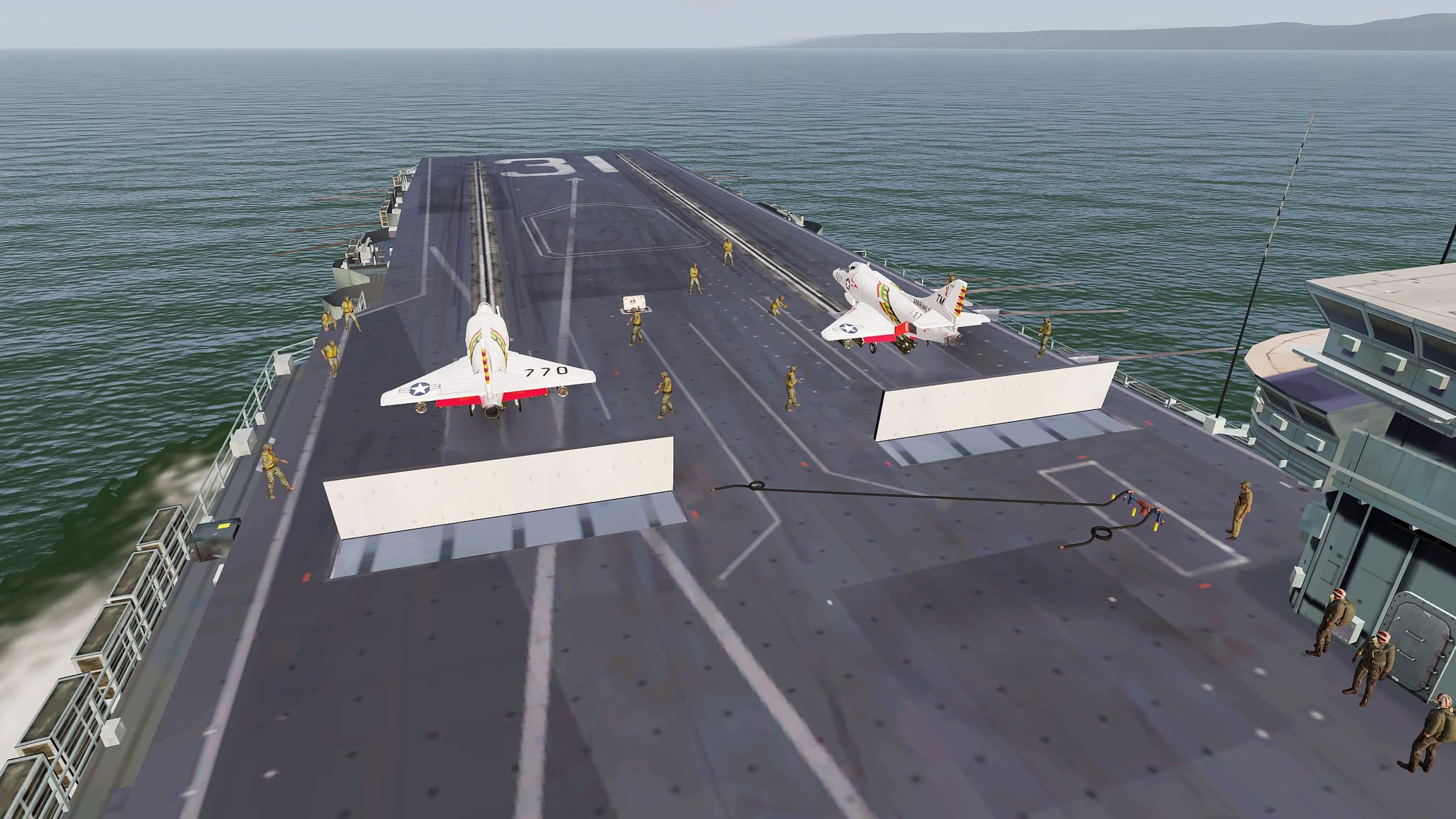 (Non-EGR Operation) A flight of A-4E Skyhawks, accompanied by a single EA-6A Intruder conduct three separate bombing operations against Hanoi Bridge. After everyone learns how to take off from a carrier (with mixed results)