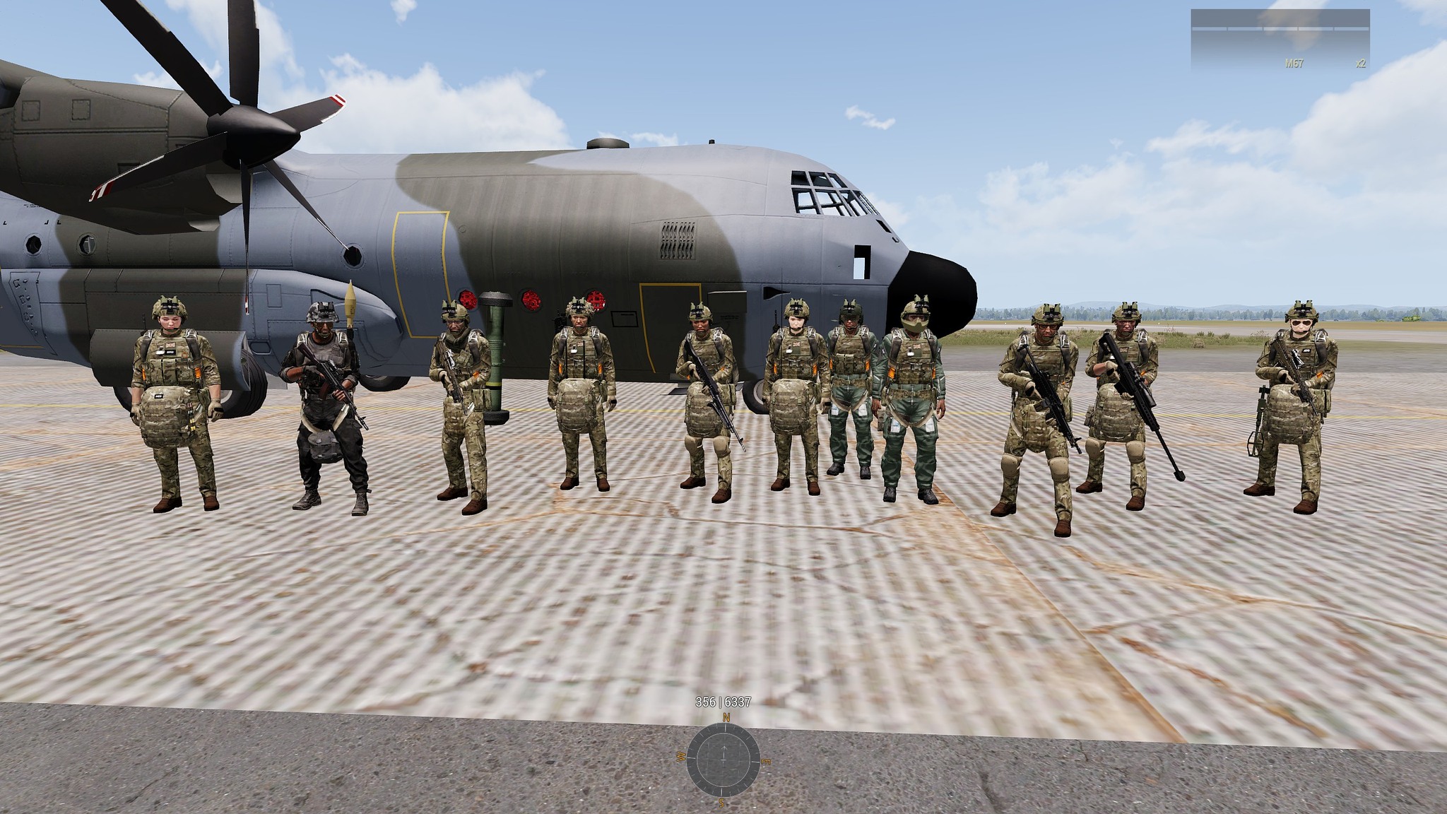 A night-time HAHO parachute insertion as a prelude to an assault on an air defence headquarters. In the event, headwinds and shenanigans stealing vehicles meant that Foxhound Red only got through the prelude tonight.