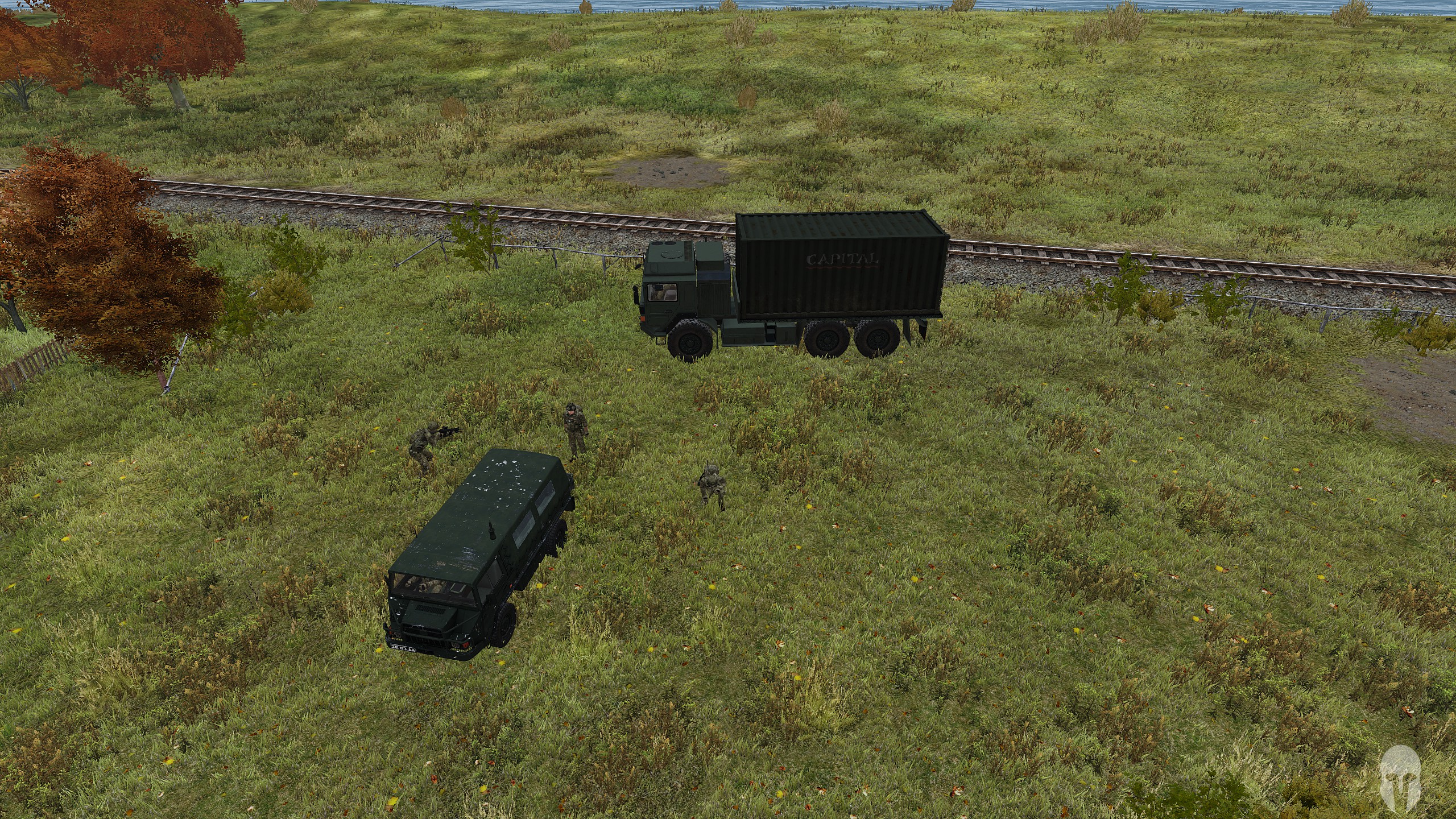 UK UNPROFART troops attempt to deliver Xmas cheer to the Polish and Belgian force elements, but come under repeated attack from Bitcoin Bandits who consider the appalling British Xmas food (limp turkey, soggy spuds, and questionable 'gravy') in the convoy's containers to be ambrosia compared to their current rations.