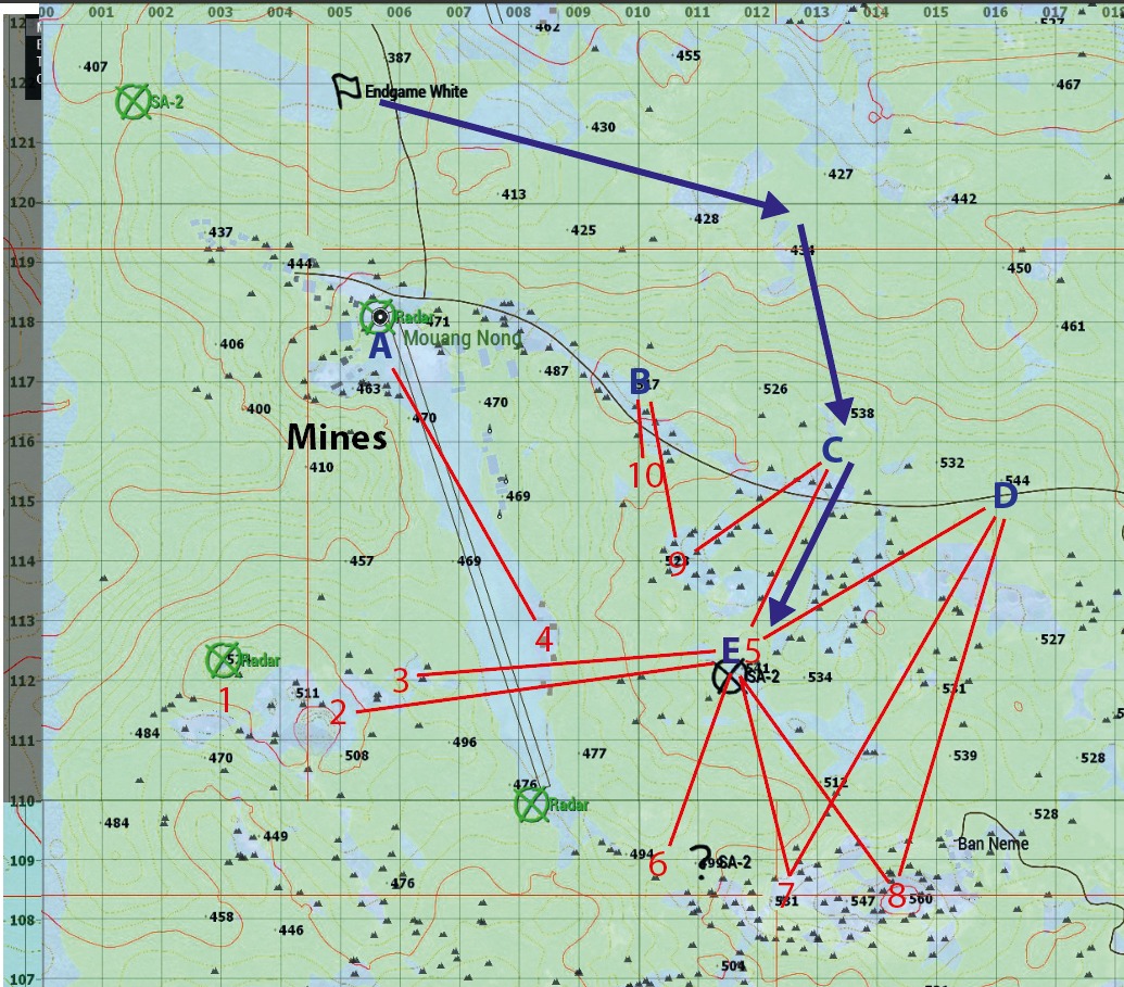 I think the likely spots for remaining SA-2 and Arty sites are the ones numbered here from 1-10. (I suspect 2, 3, 4 are possible arty locations, while we know one SA-2 is at 5, suspect one SA-2 is probably at 6 or 7, and the others might be at at 8, 9, 10 or some rando location in the jungle I didn't think of.