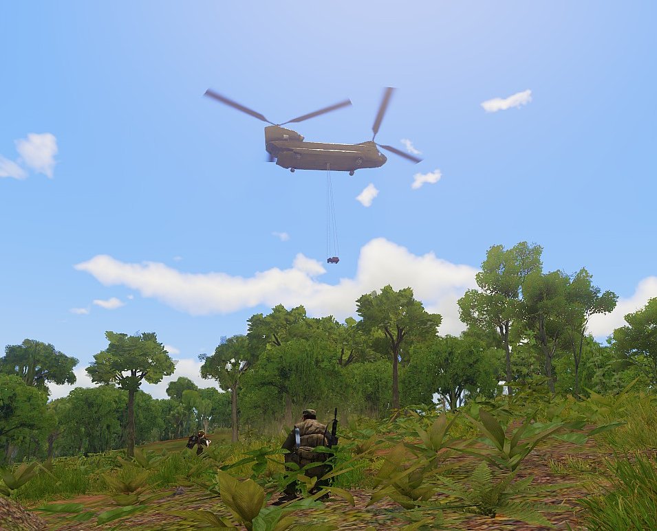 "That CH-47.. when it took all that damned ground fire, the engines started dropping off power pretty fast. I firewalled it to slow the descent and then notice the fuel just dropping like a brick. I back off power and let it drop until the front starboard wheel made contact and firewalled it again to keep it there. I managed to stabilize the center of gravity on the helo just as the fuel hit zero and the ass dropped onto the ground." AKA he raced the crash to the ground and won. Also logistics flights and ratta-tat-tat on the rock and baddied hiding bheind it.