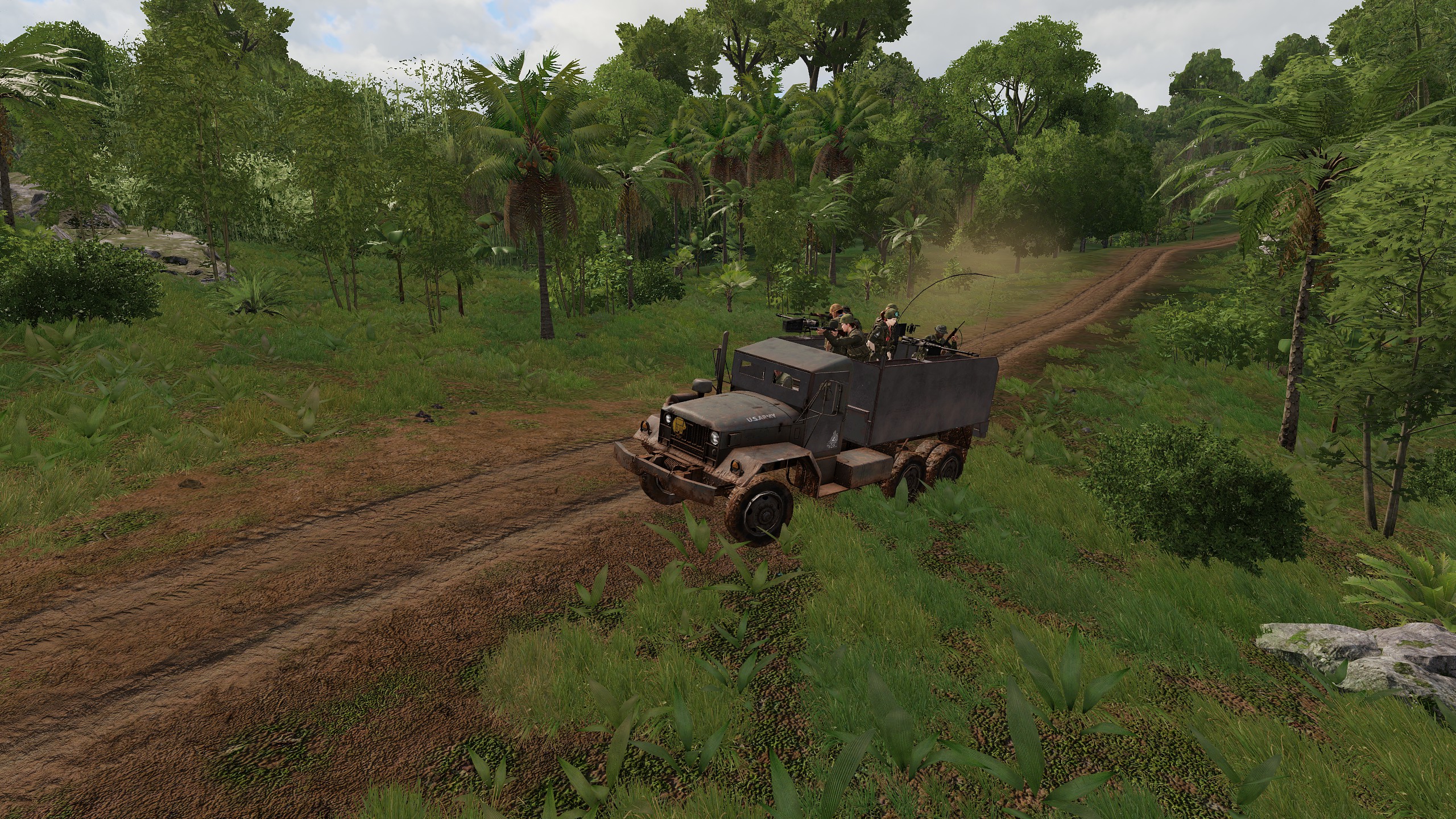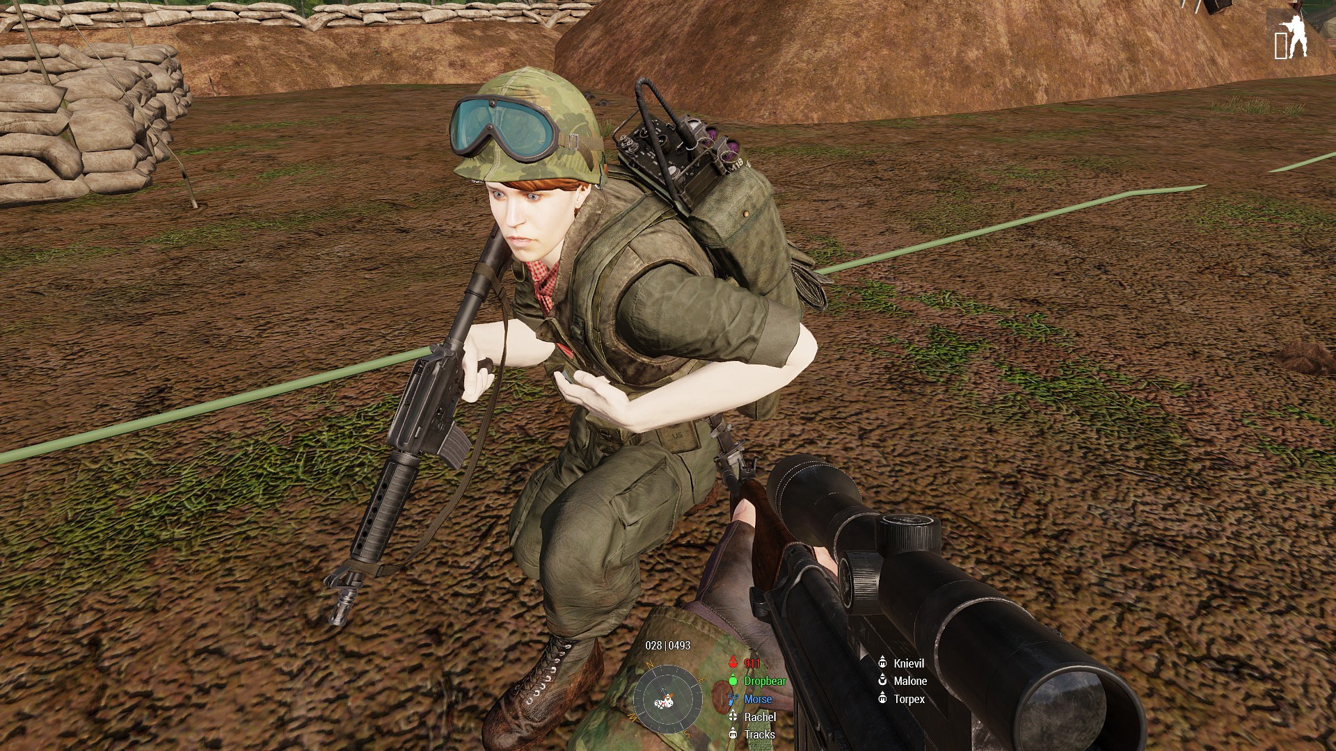 b) While pulling back to the LZ word came through of another friendly village under attack, and the squad was tasked with clearing the rock base the hosiles were believed to be inhabiting. Enemy heavy weaponry in the area made htings a little spicy, and it was a hard fight to get to the rock itself to being the assault. Air Support confirmed the heavy weaponry was mounted on the rock and it was soon taken out before the remaining defenders inside the rock were neutralised. It seems they managed to get word out though, as a hositile guntruck was spotted entering the vicinity which caused a lot of chaos until Pvt Leroy and LCpl Torpex combined to take it out. The area neutralised it was time to RTB for a new tasking.