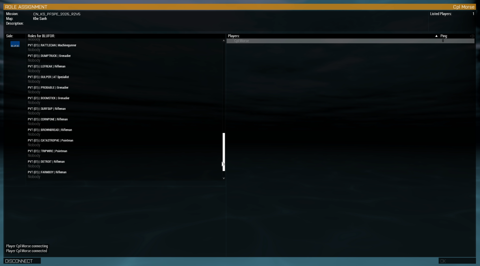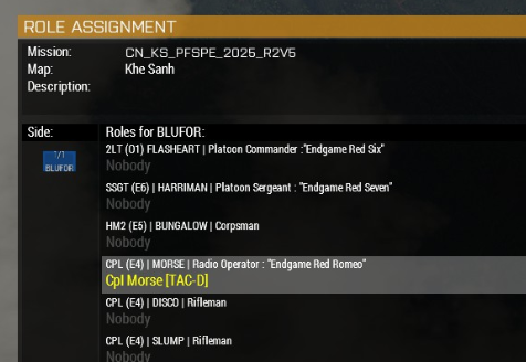 The lobby will load next. If you can’t see the list of roles on the left, click the BlueFor box in the top left and they should display.