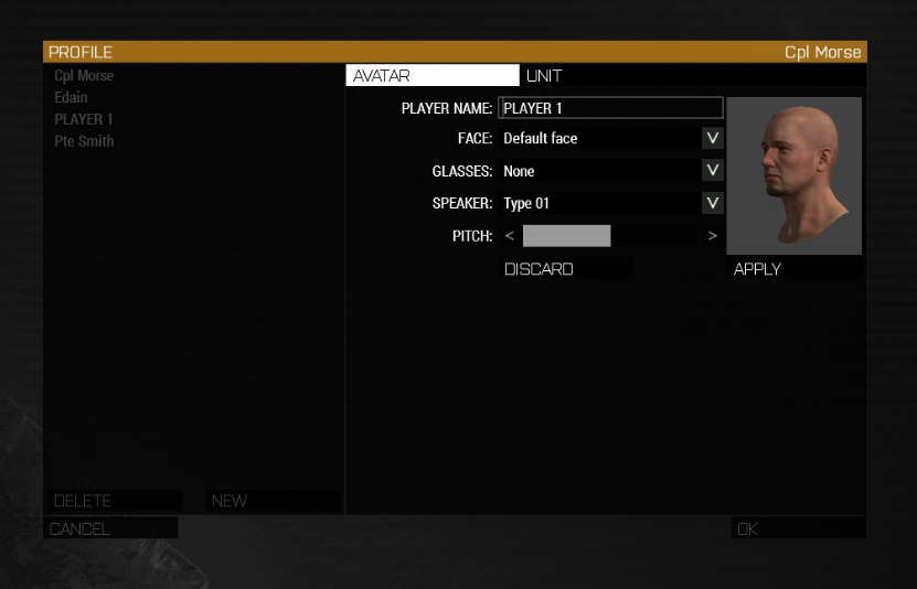 When you first log into Arma it’ll automatically set up your profile using your computer login name. You can’t change the name of this initial profile, and it’s tricky to move alterations to keybinds and such between profiles, so we strongly recommend setting up a second profile now, before you go through Boot.