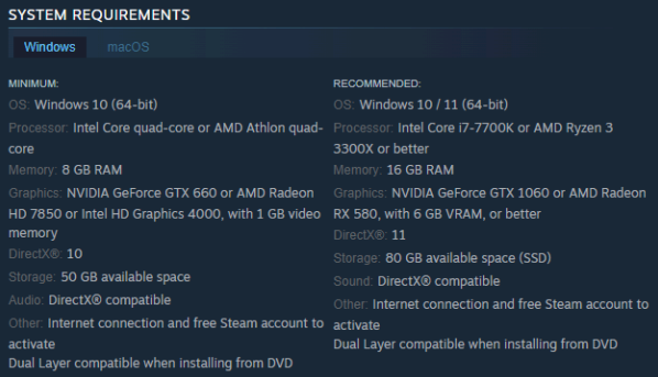 At the time of writing it was priced at £23.99, but frequently features in Steam Sales if cost is a limiting factor. The minimum system requirements are below: