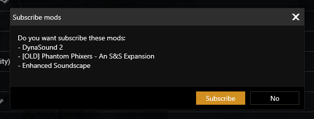 A pop up will appear with a list of mods, asking if you want to subscribe to them, click Subscribe. This may take a while.
