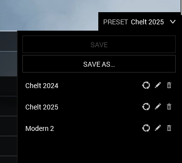Once the mods are all downloaded, go to the top right of the screen and click on the Preset dropdown arrow