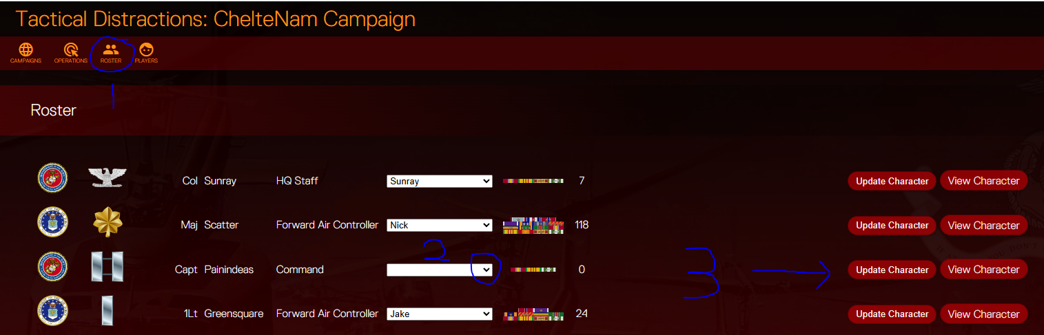 To claim a slot click the dropdown arrow on their name box (2) and find your account name. Your name should then appear in the box.