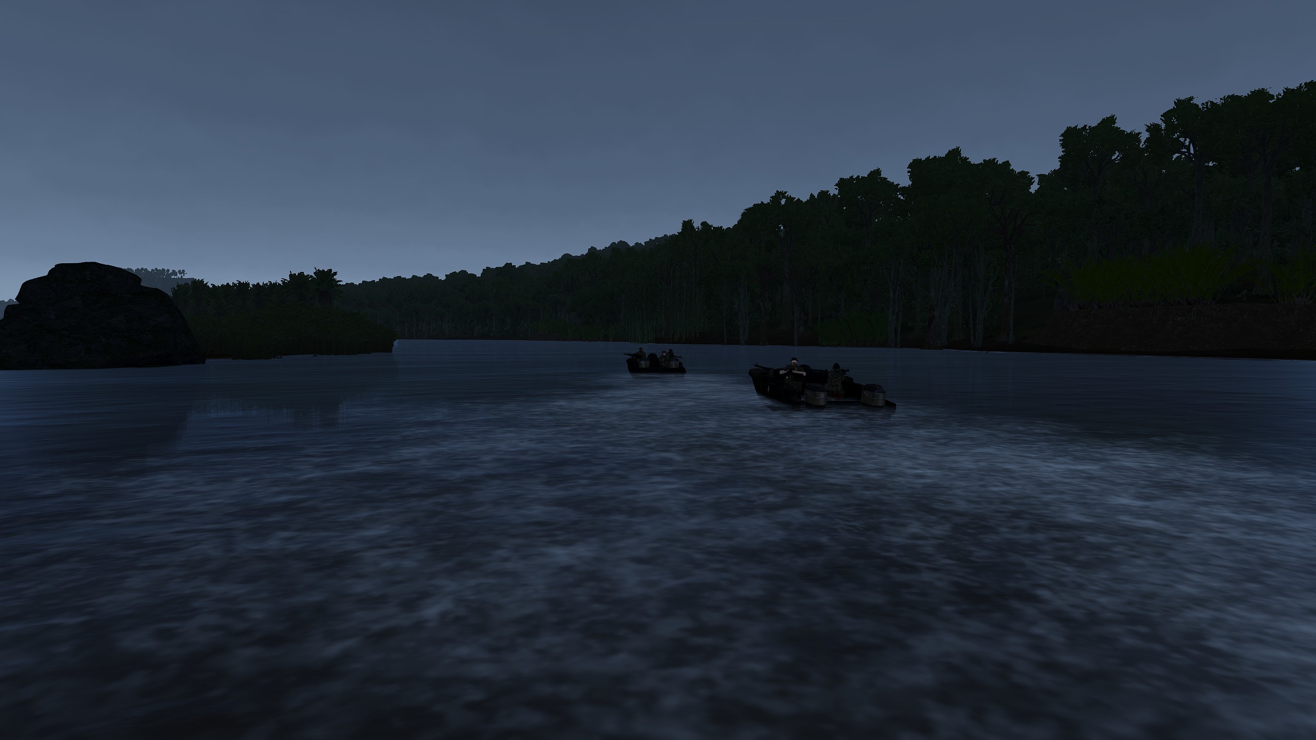 The exfil south to the village of Quy Loc is intersperced with paratroopers being dropped in Endgame Red's path, and exploratory fire from the villages of Cao Dec and Ben Cai. Cambridge forces used artillery fire anytime they got an eye on the squad's position, but the marines kept moving and ignored efforts to trick them into revealing their positions. Pushing through to Quy Loc a final hostile blocking force was destroyed, before the marines loaded up into the boats that had been stashed there for them, and exfilled east along the river, pursued by helicopter gunships.