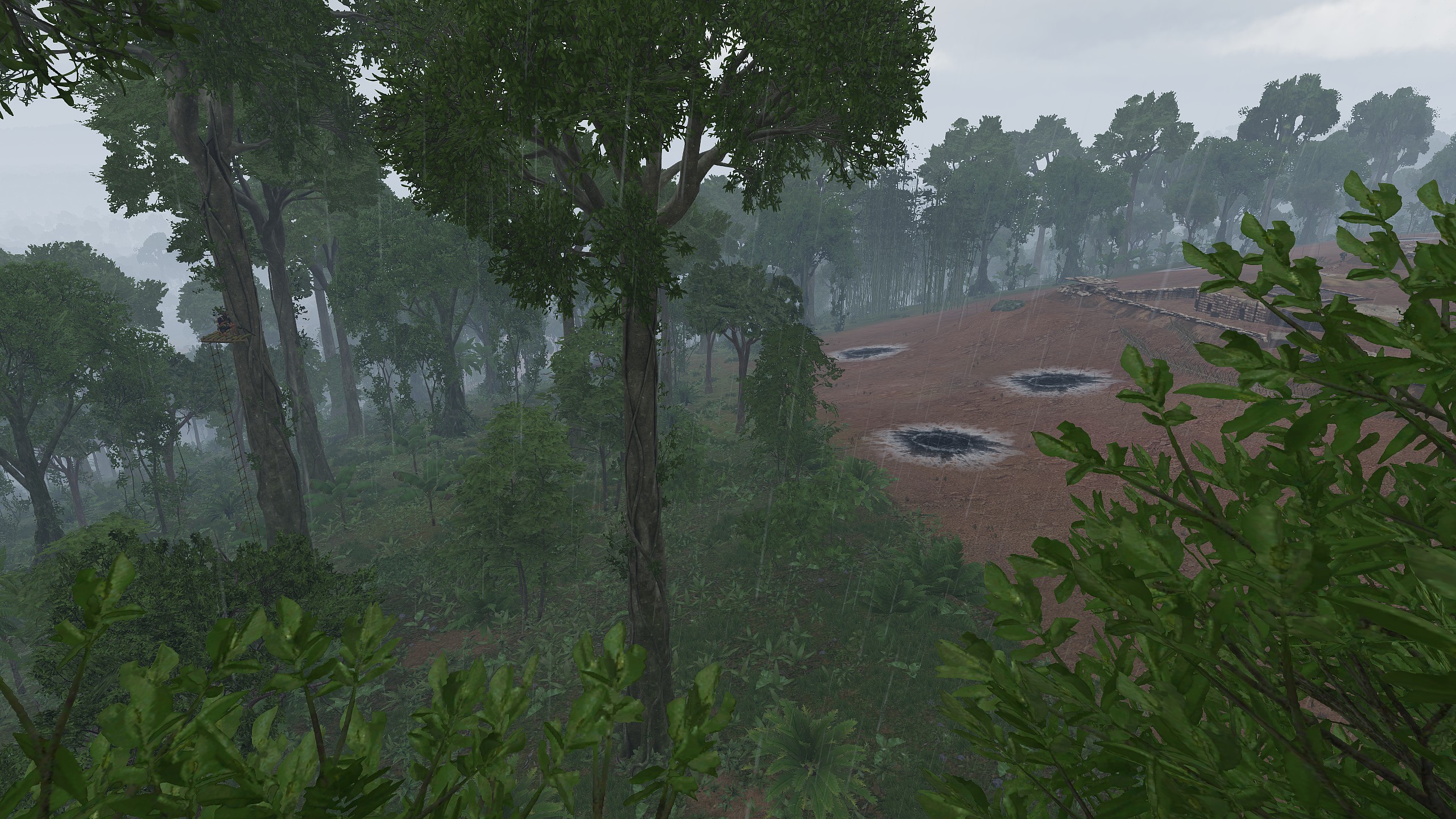 Yellow team checked in, and were clearing a small village to the north, but had not yet found the mortars, was good to hear from them though, as it meant they were close enough for either group to call for support from the other if required. As soon as they’d checked in we were hit by more mortar fire, so I guess they weren’t in that village. After that though their radio signal became broken and much harder to hear as they moved out again, and the rain became heavier.