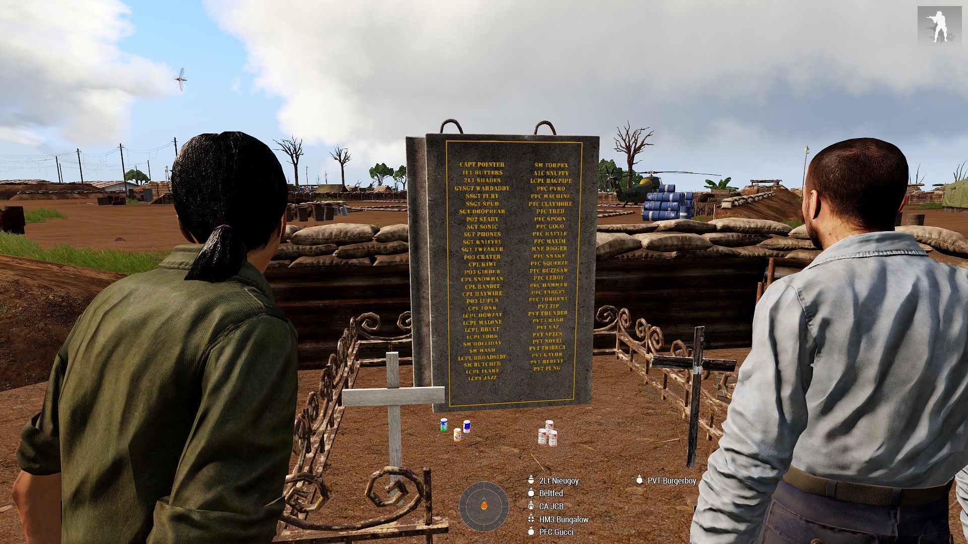 Standby buddy who looked out for me when JCB was fixing vehicles, and shot the Cheltie who was going to shoot me.
