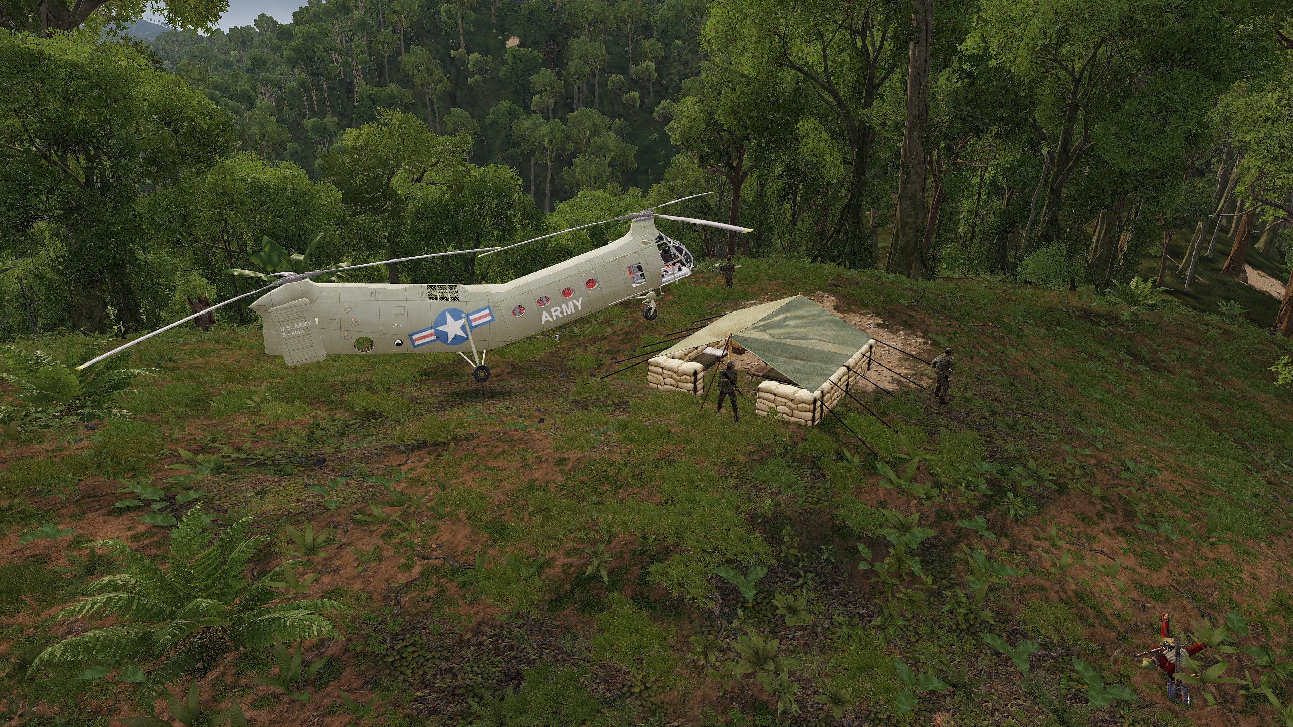 While investigating an area of the Cheltnam jungle for enemy activity, the platoon came upon a Chelt camp where two armed tuk-tuks exited and engaged the squad. Pvt biscuit set up and laid down large amounts of accurate fire. Biscuit's fire disabled the first vehicle and suppressed the second, allowing other elements of the squad to move up and engage and clear the camp.