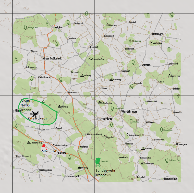 - Forests North of looters castle has pockets of NATO troops.
