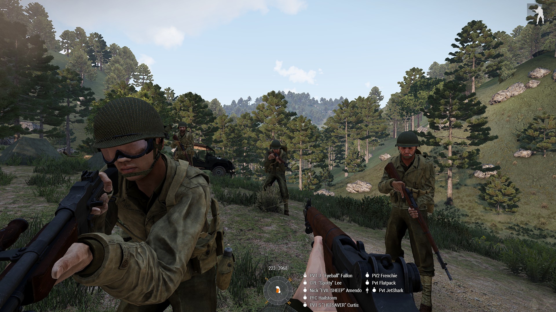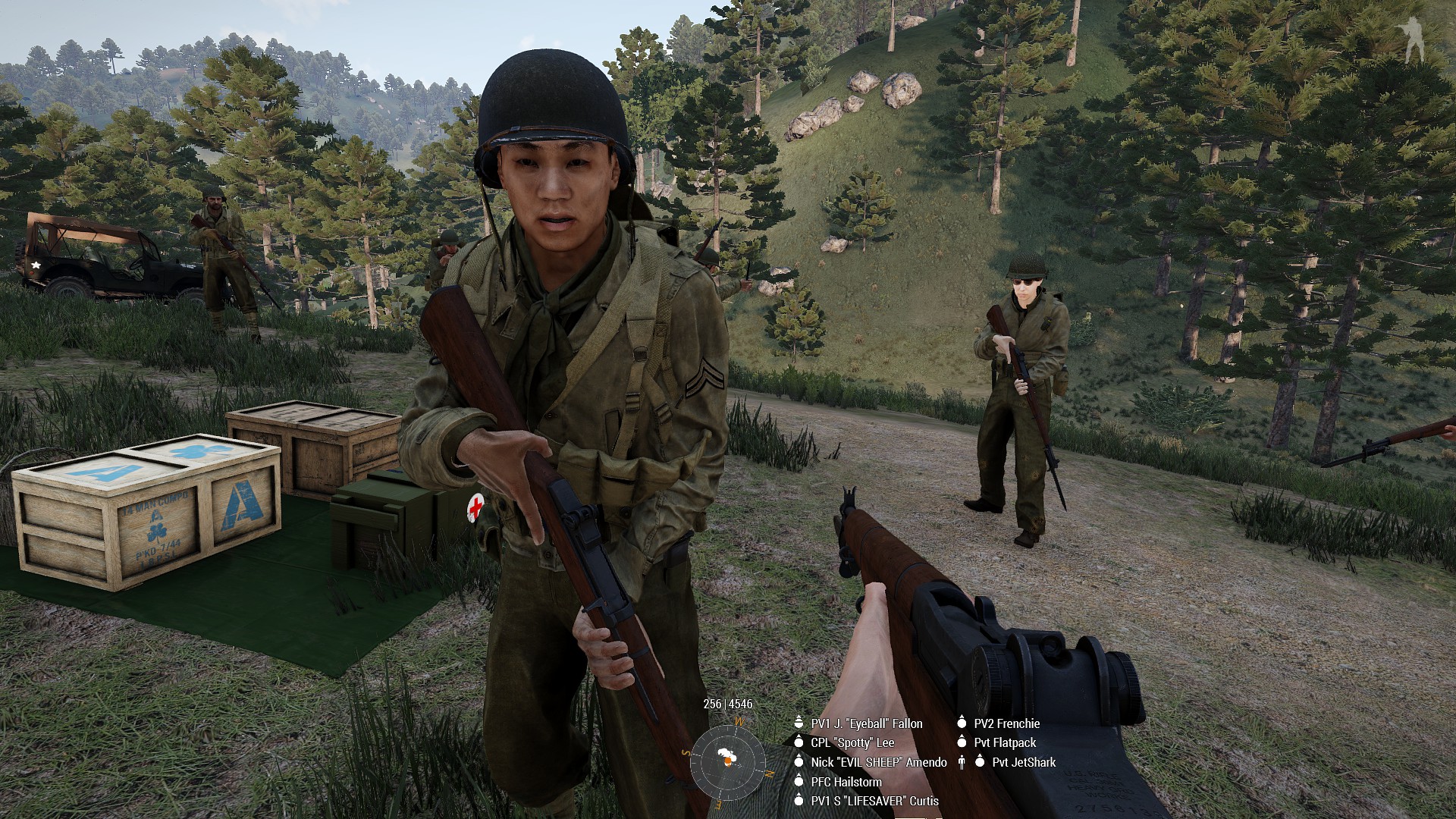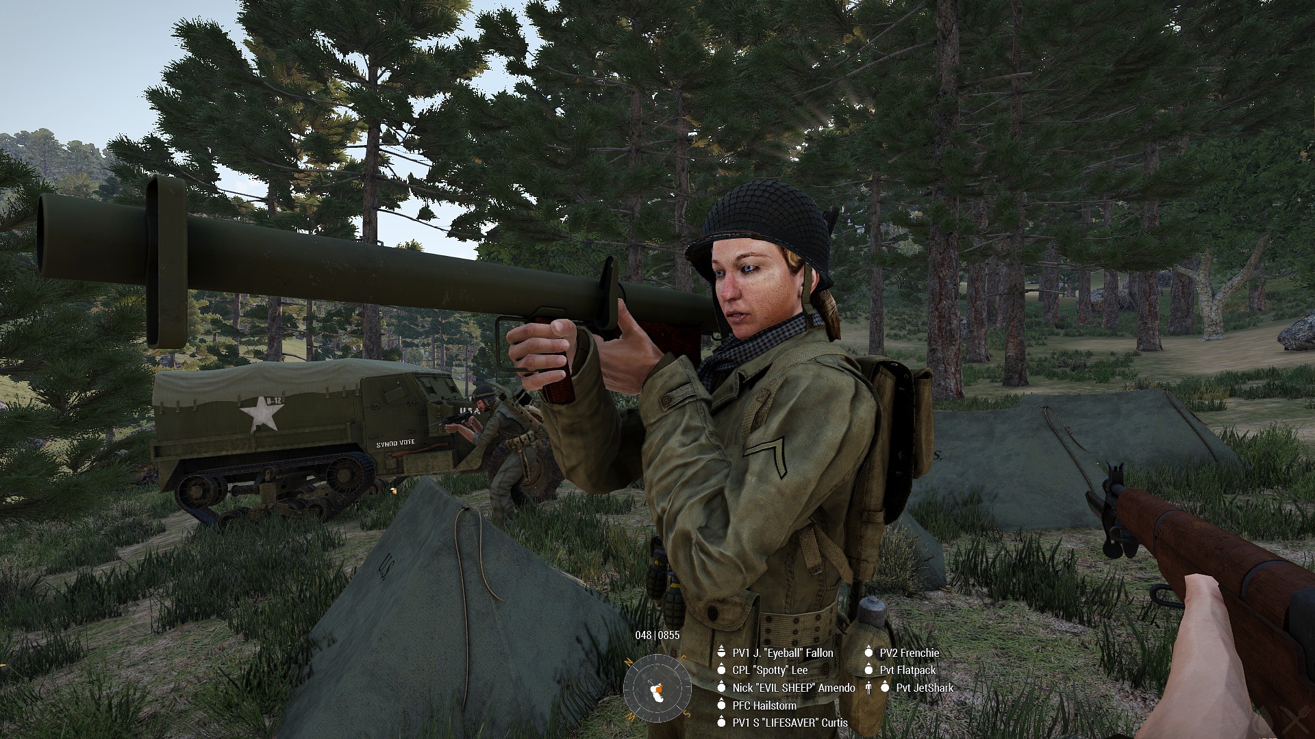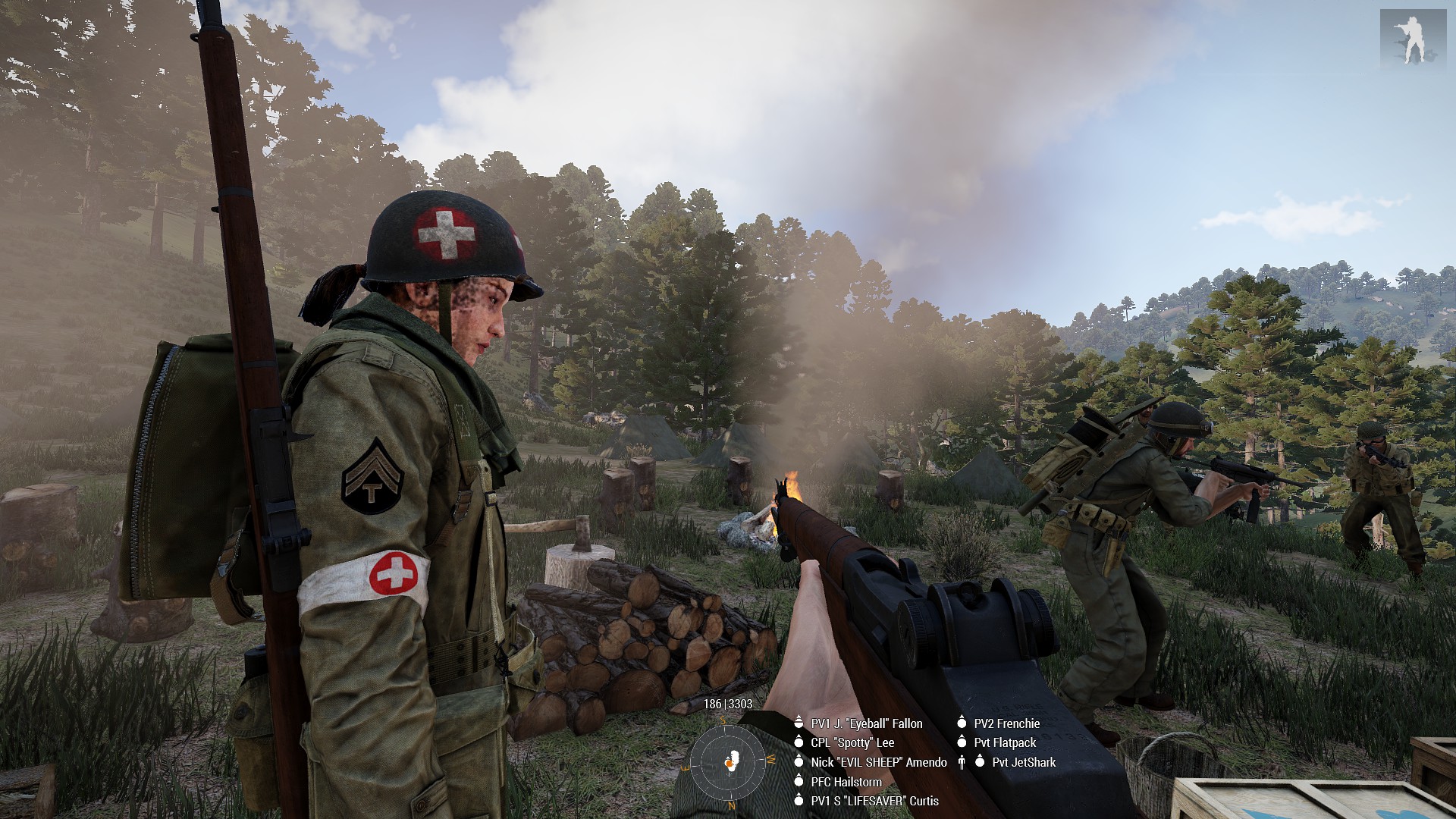 Took part in and initiated textbook ambush of motorised formation that allowed perimeter of airfield to be maintained. Rendered immediate medic aid to team-mates whilst under fire allowing for defensive position to be held without burdening stretched medical staff and for injured team mates to rejoin the defense in a timely manner allowing enfilading fire on an assault hitting another part of the defensive line, driving that assault off.