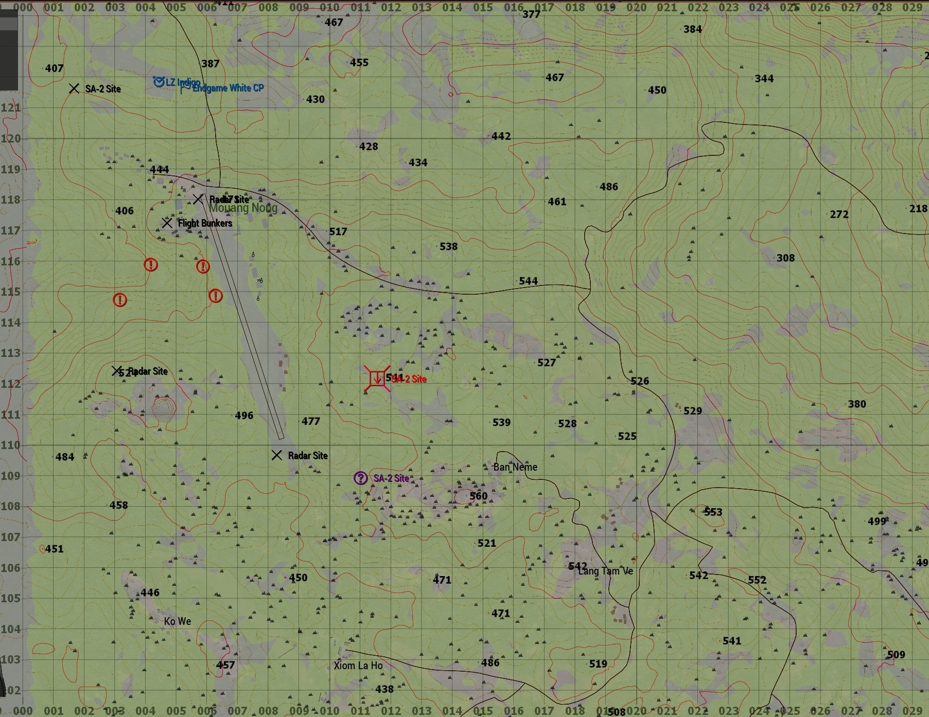 Endgame White were dispatched as a second wave and have secured an LZ to the north of the airfield (LZ Indigo) and established a hasty CP, med station, and mortar site. Their squads are preventing PAVN forces from re-occupying the facilities and village at the North of the runway, although they do not hold the buildings themselves. The area between northing 117 and 119 is contested.