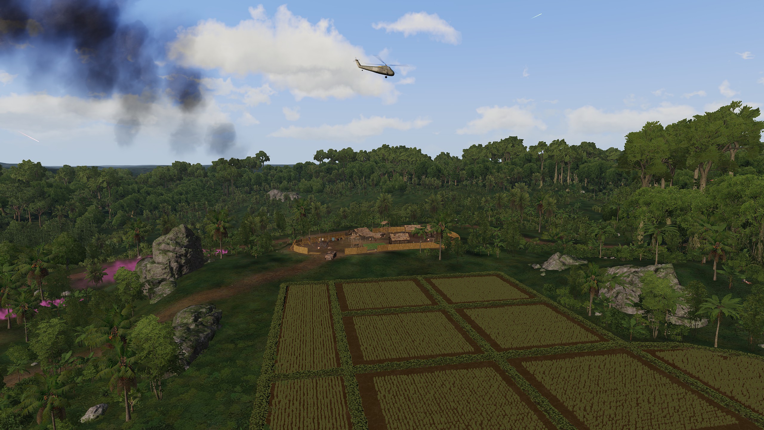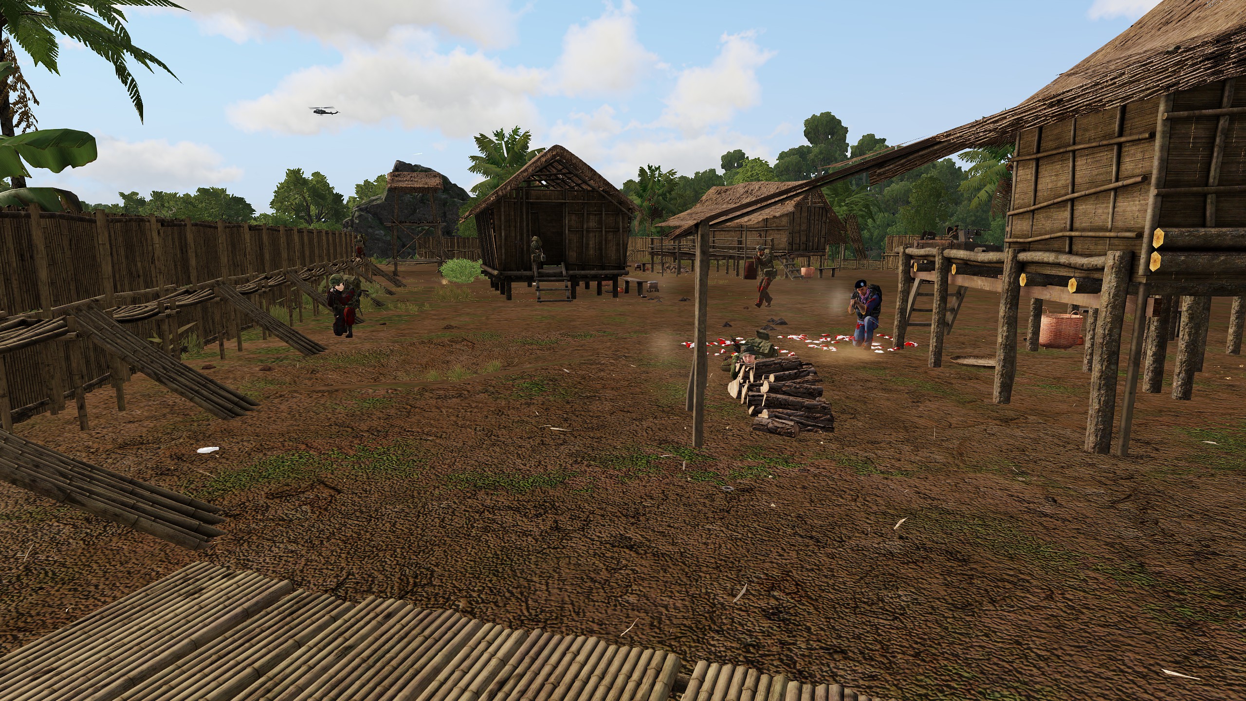 With two rocky outcrops left to be cleared by the US boat dock, Endgame Red move in under heavy fire to get the job done. The first rock turns out to be two, joined with a shonky bridge, and the fighting is hard until enough marines are in position to smoke and push. Co-ordinated clearnace leads to both sides of the bridge being cleared, and a lot of hard work for the Corpsmen. The second rock proves tricky due to the presence of two captured US PoWs, meaning HE can't be used, however sparingly. The rock is squired with relative speed, but then Chelt reenforcements arrive and trap the enterances, leaving sea-mines and tripwires that need defusing before a somewhat organised withdrawl back to base. With an evac helo inbound to the boatdock it's a fighting exit, but both freed PoWs are safely escorted back to base. After a short break for a smoke and to allow the medics to force replacement blood into people, and it's back out into the the field again, this time to support a AVRN garrison. With two helos and a ground team it's heavy fighting, and one helo is lost (but the crew rescued). The CAS and counter-sniper work means that the attack is eventually repulsed though, and Endgame Red return to base for a well earnt rest.