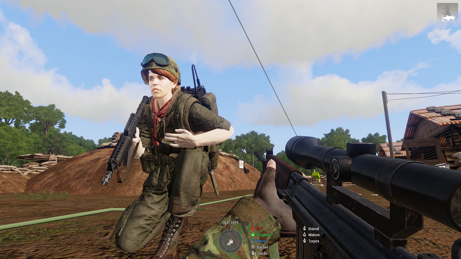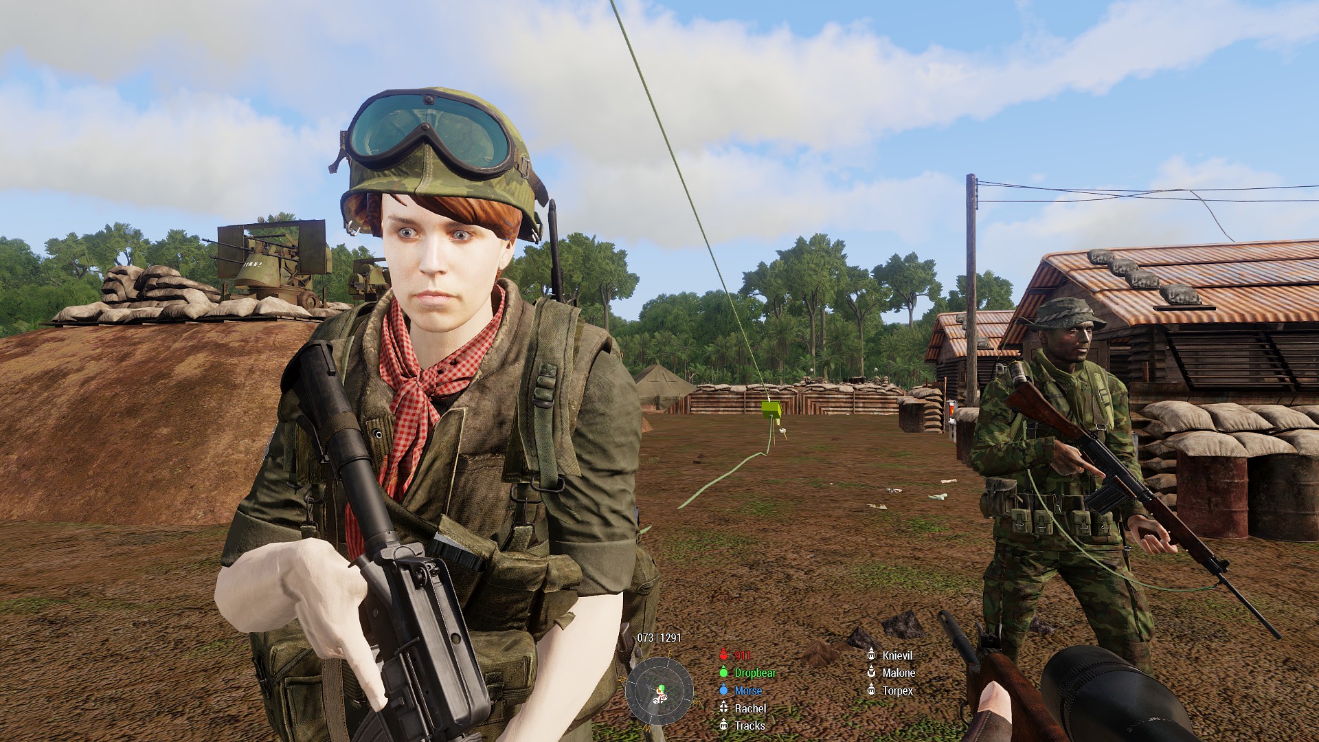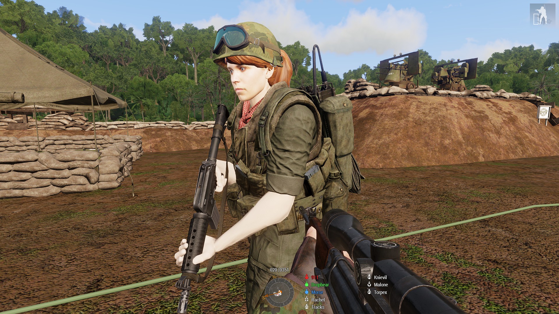 b) While pulling back to the LZ word came through of another friendly village under attack, and the squad was tasked with clearing the rock base the hosiles were believed to be inhabiting. Enemy heavy weaponry in the area made htings a little spicy, and it was a hard fight to get to the rock itself to being the assault. Air Support confirmed the heavy weaponry was mounted on the rock and it was soon taken out before the remaining defenders inside the rock were neutralised. It seems they managed to get word out though, as a hositile guntruck was spotted entering the vicinity which caused a lot of chaos until Pvt Leroy and LCpl Torpex combined to take it out. The area neutralised it was time to RTB for a new tasking.