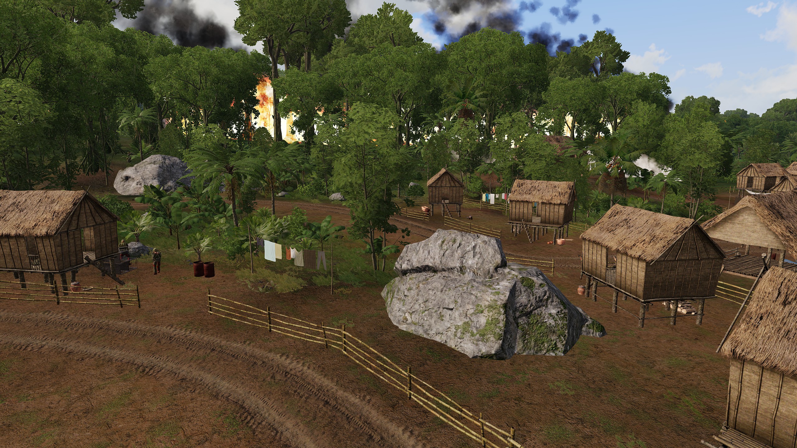 Phase 2: Relocate via Slick village of Ban Sum'tn, reports of recoiless in AO. Support via gunship. Found ocupied rock bunker. Defeated Enemy mechanised elements. Extract via Slick to Firebase to rearm and resupply.